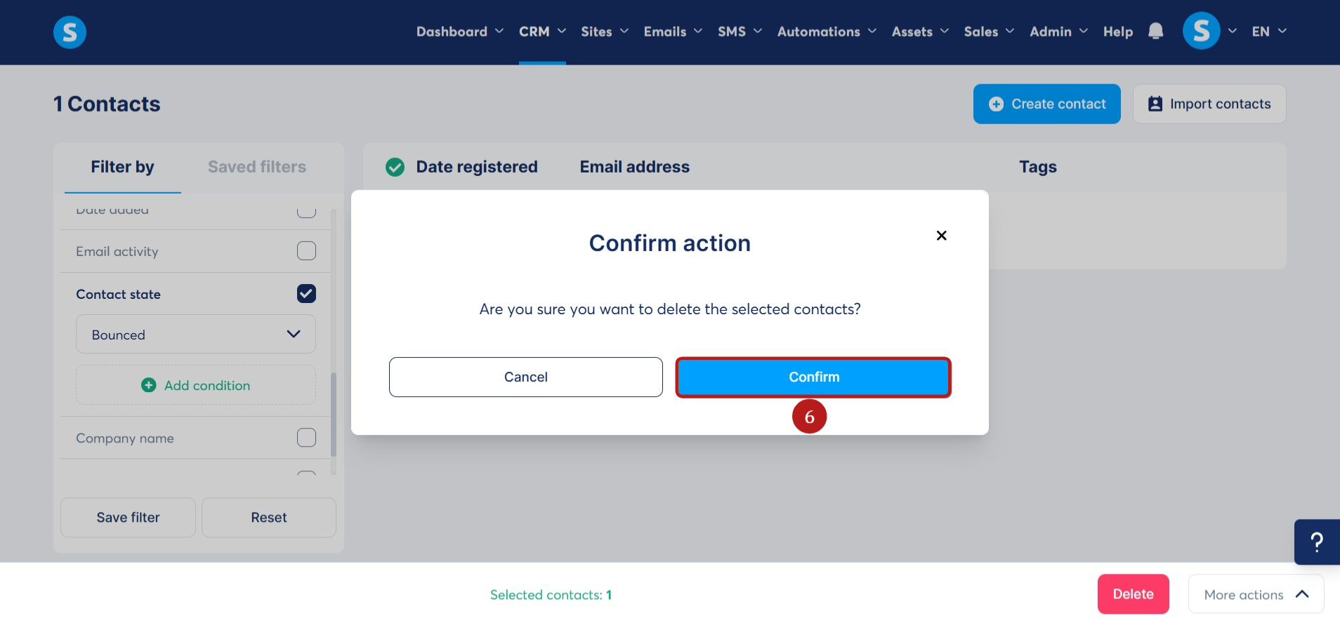 Végezetül kattintson a Megerősítés (6) gombra a kontakt/kontaktok listáról való törléséhez.