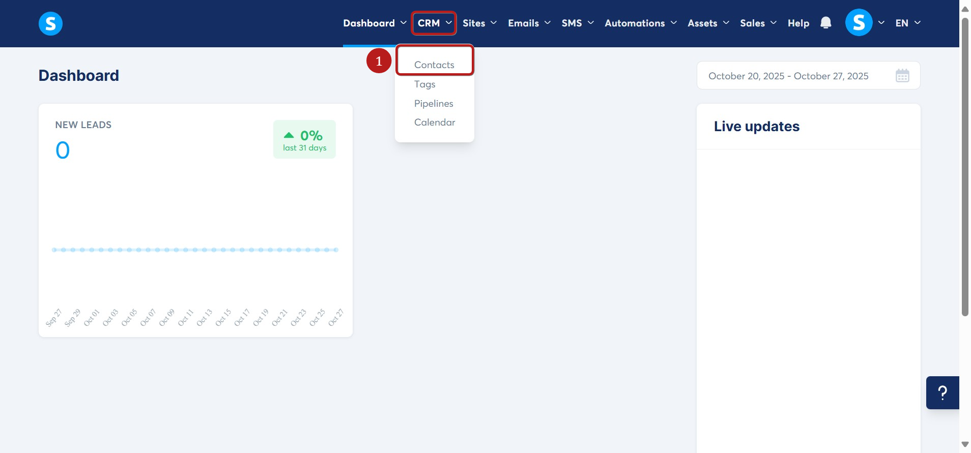 Kattintson a Kontaktok (1) menüpontra a CRM menüben.