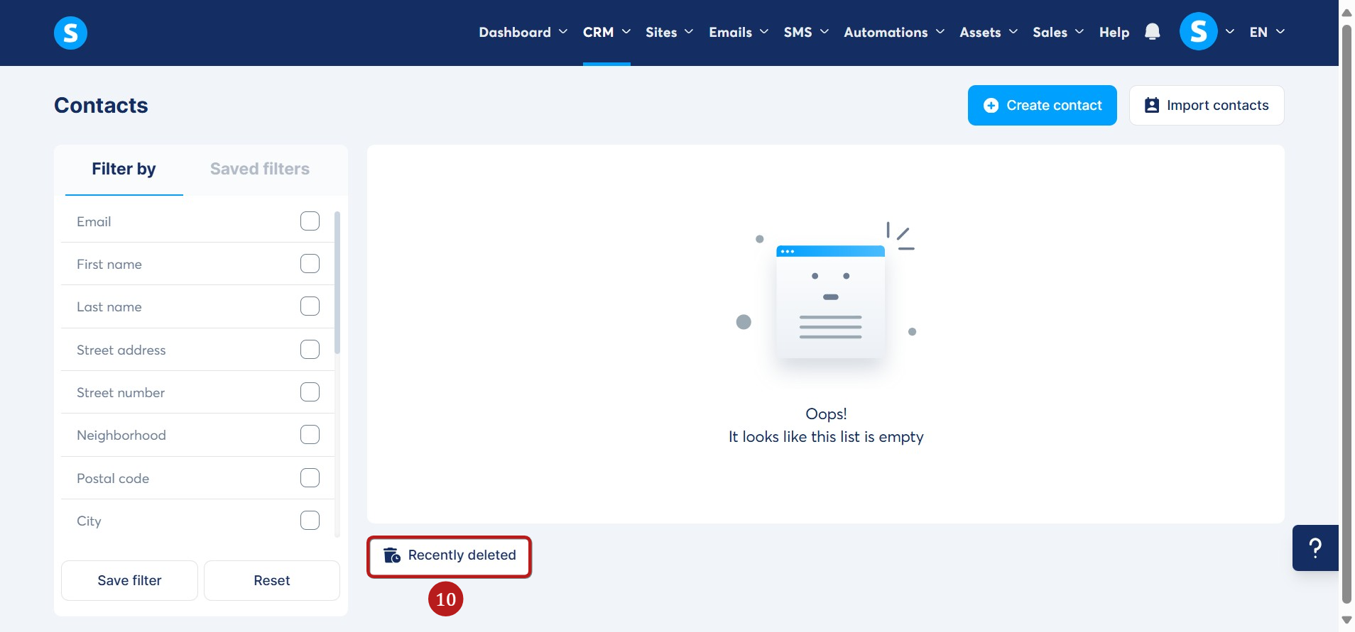Egy törölt kontakt visszaállításához kattintson a Nemrég törölt (10) lehetőségre a Kontaktok oldalon.