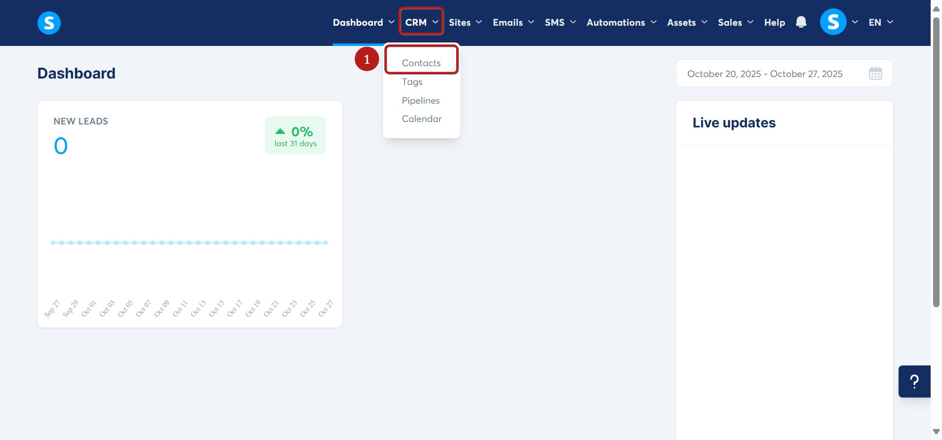 Navigáljon a Kontaktok (1) menüpontra a CRM fül alatt.