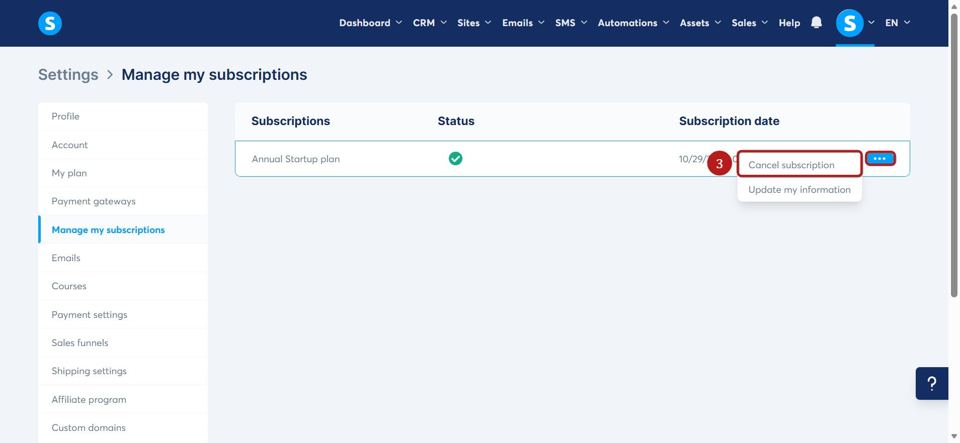 Ebben a cikkben megtudhatja, hogyan mondhatja le systeme.io előfizetését, vagy egy olyan ajánlatot, amelyet a mi platformunkon hosztolnak.