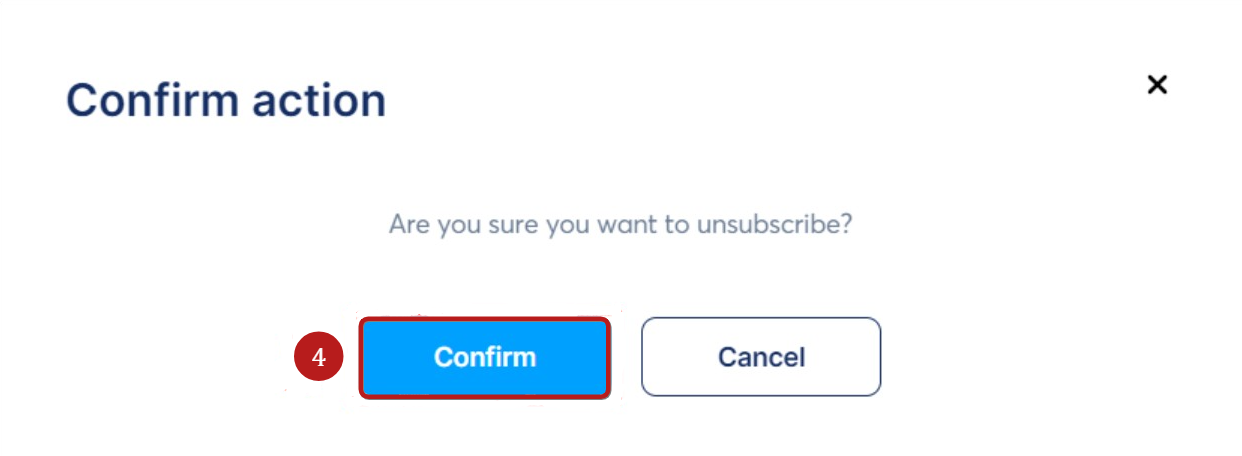 Egy felugró ablak jelenik meg, amely a lemondás megerősítését kéri. Kattintson a Megerősítés (4) gombra az előfizetés lemondásához.